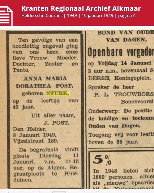 Advertentie vedronken A Sturk 1949 Gepubliceerd op 13 augustus 2020 in Anna Maria Dorothea SturkVolledige resolutie (590 × 737)